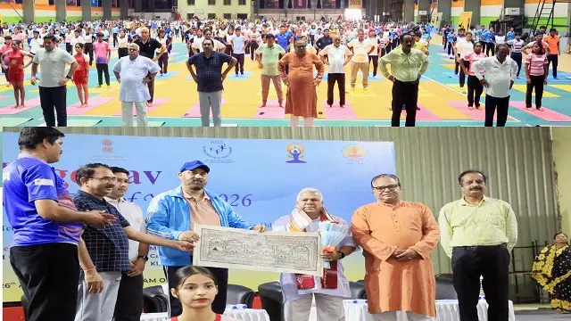 Held at the KIIT Biju Patnaik Indoor Stadium, the programme highlighted yoga as a powerful tool for physical fitness, mental well-being, and social harmony.